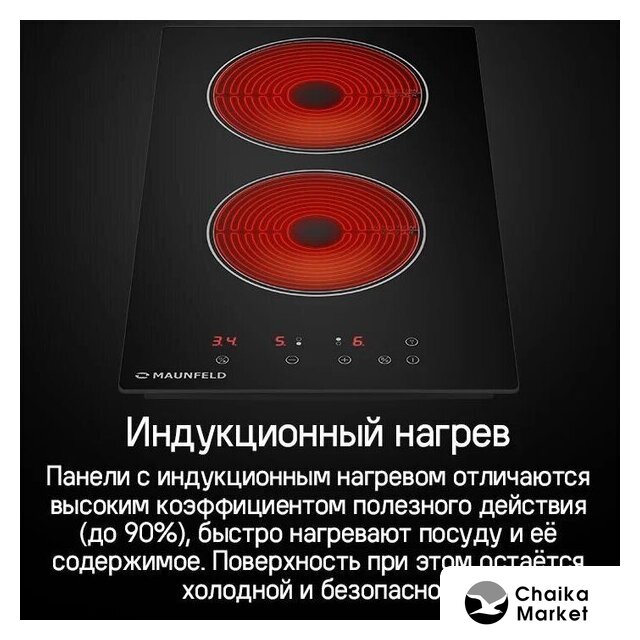 индукционная на 3 конфорки, cтеклокерамика, мощность: 6200 Вт, независимая установка, размеры (ШхГ): 45x51 см