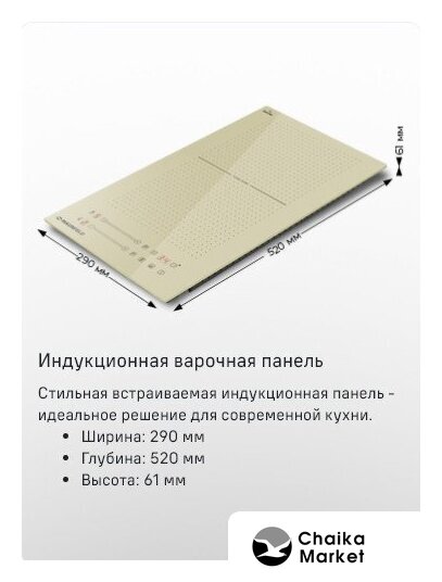 индукционная на 3 конфорки, cтеклокерамика, мощность: 6800 Вт, независимая установка, размеры (ШхГ): 59x52 см