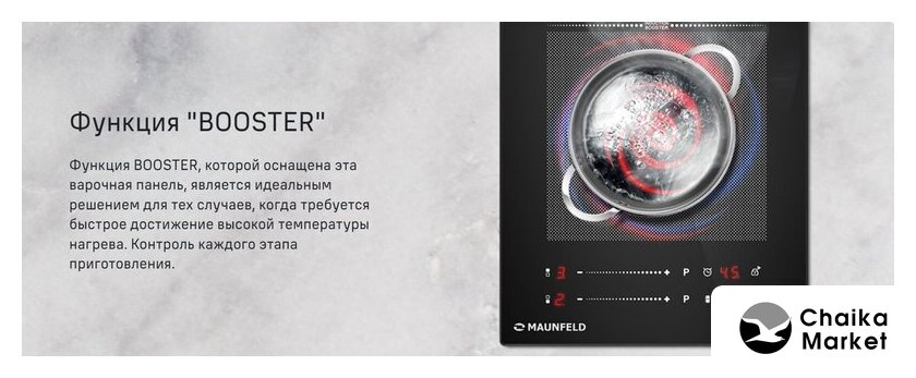 | Подробная информация о конфорках | 1х1500 (бустер 2000 Вт), 1х2000 (бустер 2800 Вт) |