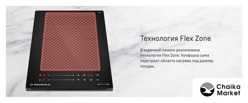 индукционная на 2 конфорки, cтеклокерамика, независимая установка, размеры (ШхГ): 28.8x52 см