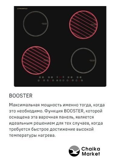 | Подробная информация о конфорках | 2х1500 (бустер 2000)2х1200 (бустер 1500) |