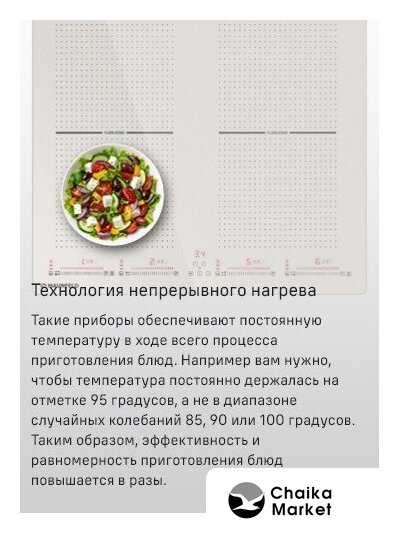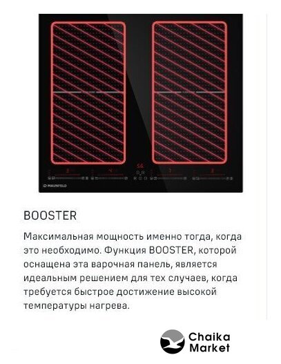 | Подробная информация о конфорках | 2х2000Вт (бустер 2800Вт)2х1500Вт (бустер 2000Вт) |