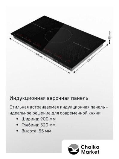 индукционная на 4 конфорки, cтеклокерамика, независимая установка, размеры (ШхГ): 59x52 см