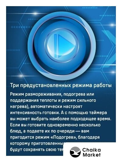Автоматические программы | размораживание, подогрев, сильный нагрев |