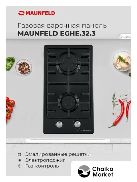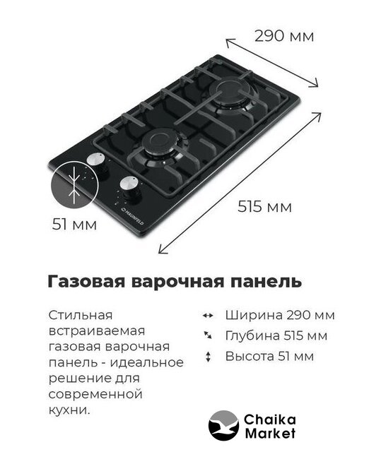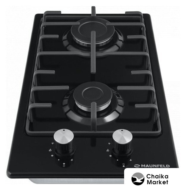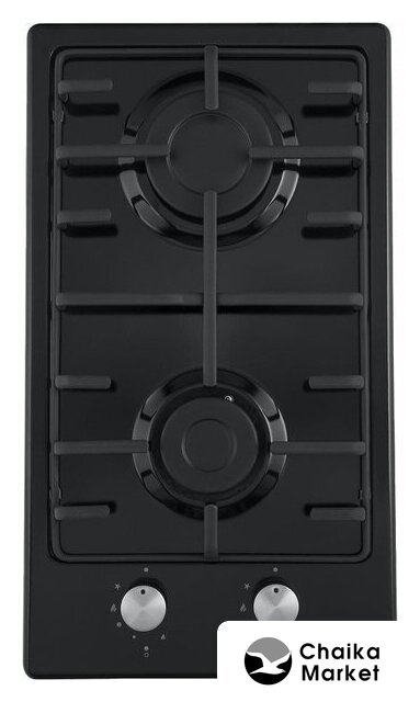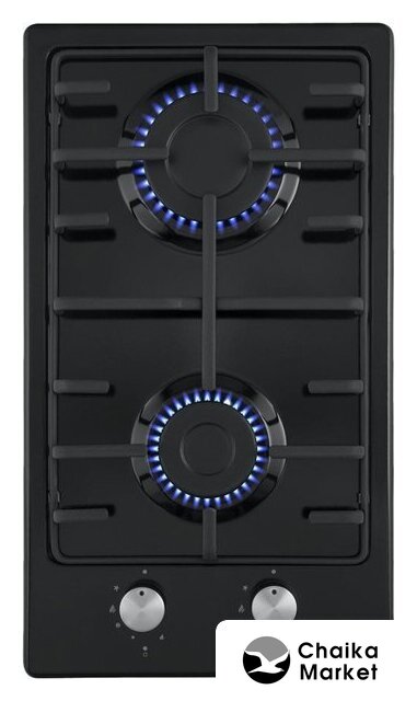 газовая на 2 конфорки, закаленное стекло, мощность: 4300 Вт, автоматический электроподжиг, газ-контроль, решетки: чугун, независимая установка, размеры (ШхГ): 29x51.5 см