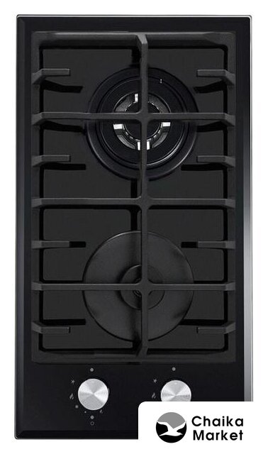 газовая на 2 конфорки, закаленное стекло, мощность: 5200 Вт, автоматический электроподжиг, газ-контроль, решетки: чугун, независимая установка, размеры (ШхГ): 29.4x51 см