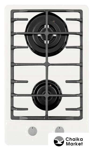 газовая на 2 конфорки, закаленное стекло, мощность: 4300 Вт, автоматический электроподжиг, газ-контроль, решетки: чугун, независимая установка
