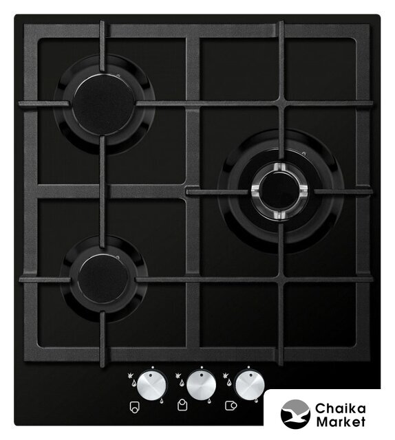 газовая на 3 конфорки, нержавеющая сталь, мощность: 5700 Вт, автоматический электроподжиг, газ-контроль, решетки: чугун, независимая установка, размеры (ШхГ): 44x51 см