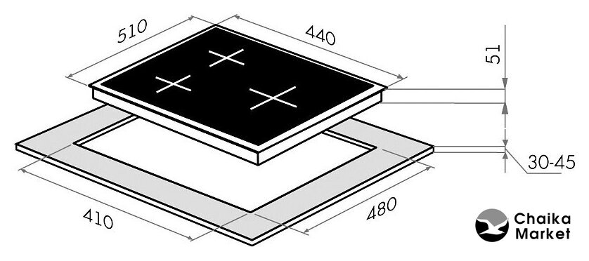 | Подробная информация о конфорках | 3 конфорки мощностью: 3000, 1700, 1700 Вт. |