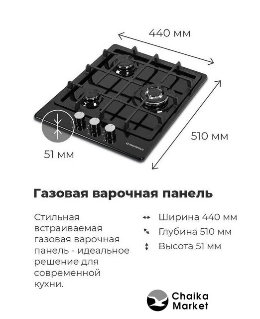 Подробная информация о конфорках | 3 конфорки мощностью: 3000, 1700, 1000 Вт |