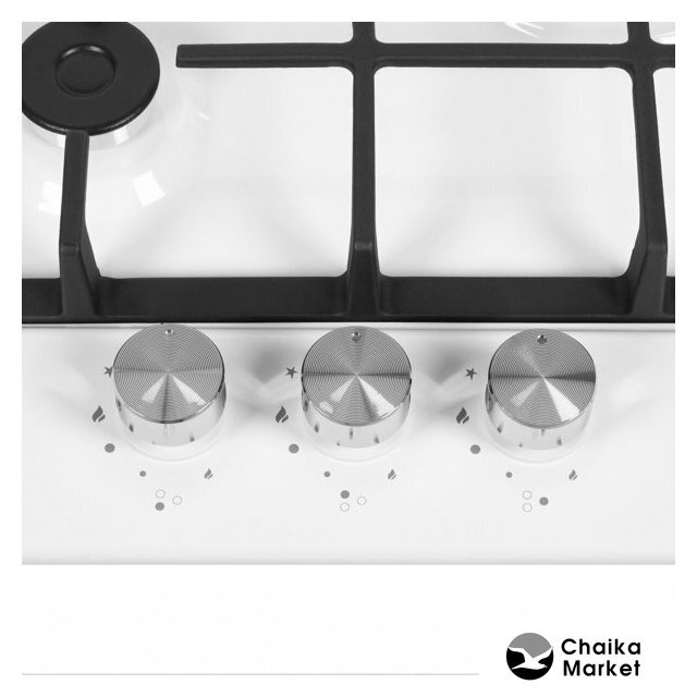 газовая на 4 конфорки, закаленное стекло, мощность: 7700 Вт, автоматический электроподжиг, газ-контроль, решетки: чугун, независимая установка, размеры (ШхГ): 60x52.5 см