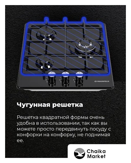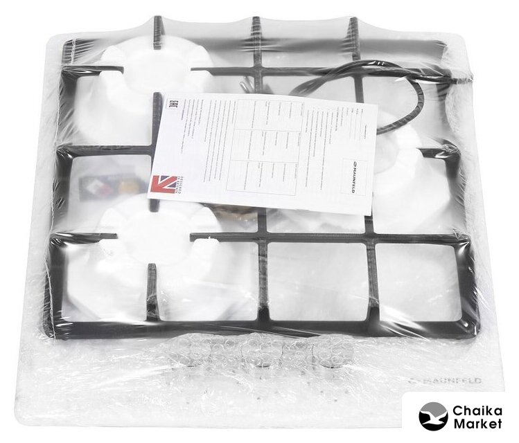 газовая на 4 конфорки, закаленное стекло, мощность: 7800 Вт, газ-контроль, решетки: чугун, независимая установка, размеры (ШхГ): 60x52 см