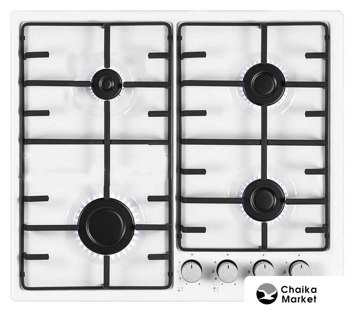 газовая на 4 конфорки, эмалированная сталь, мощность: 7900 Вт, автоматический электроподжиг, газ-контроль, решетки: эмалированная сталь, независимая установка, размеры (ШхГ): 61x51 см