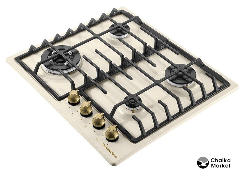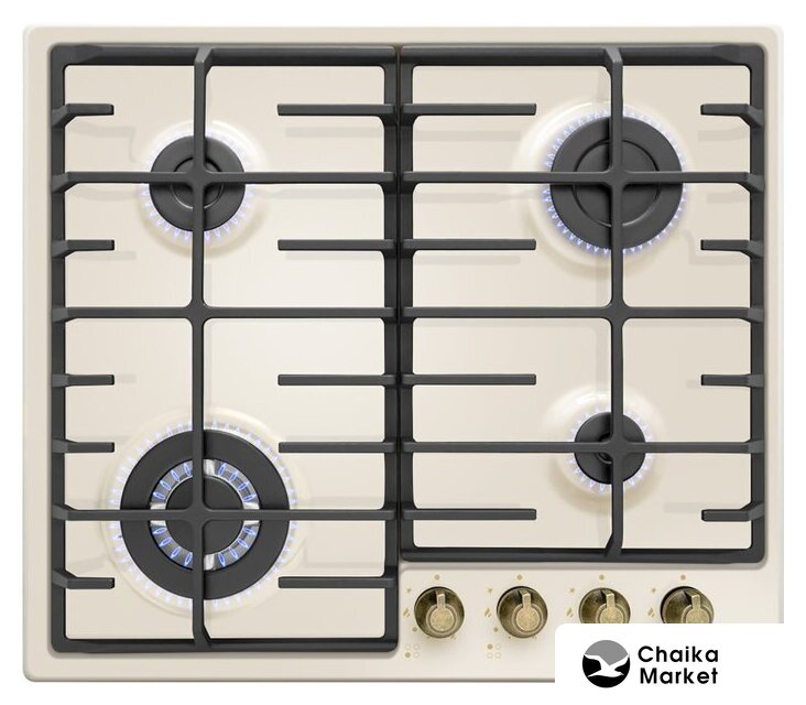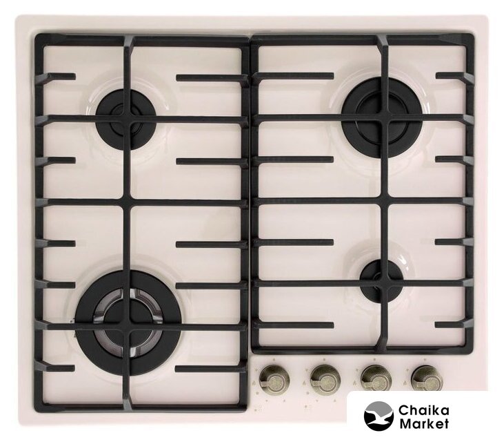 газовая на 4 конфорки, закаленное стекло, мощность: 9100 Вт, автоматический электроподжиг, газ-контроль, решетки: чугун, независимая установка, размеры (ШхГ): 59x51.5 см