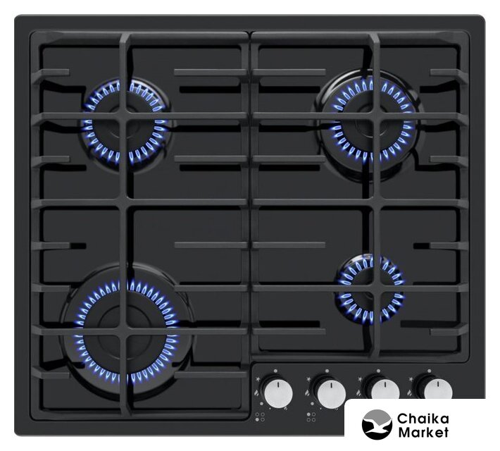 газовая на 4 конфорки, закаленное стекло, мощность: 8200 Вт, автоматический электроподжиг, газ-контроль, решетки: чугун, независимая установка, размеры (ШхГ): 59x51.5 см