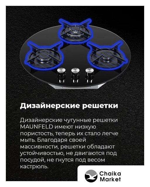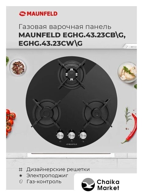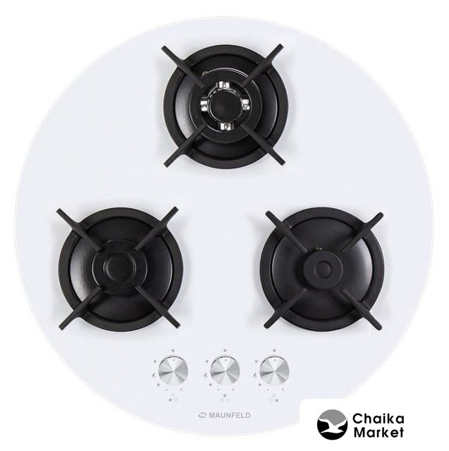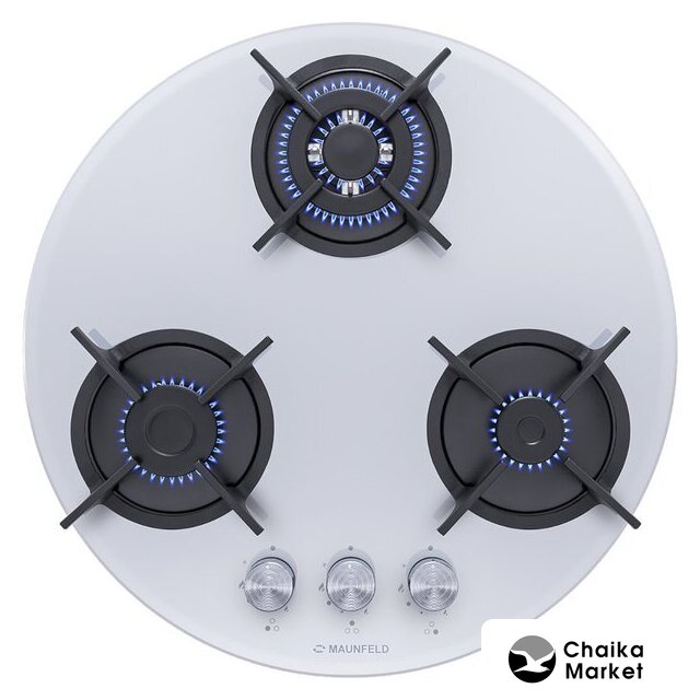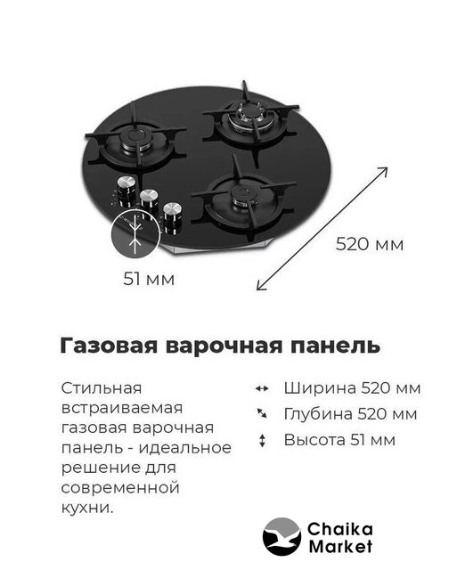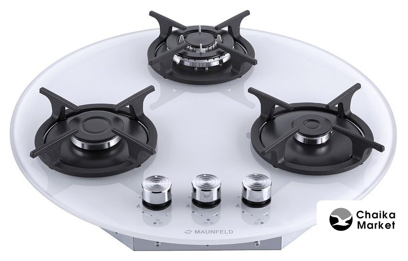 газовая на 3 конфорки, закаленное стекло, мощность: 5700 Вт, автоматический электроподжиг, газ-контроль, решетки: чугун, независимая установка, размеры (ШхГ): 44x51 см