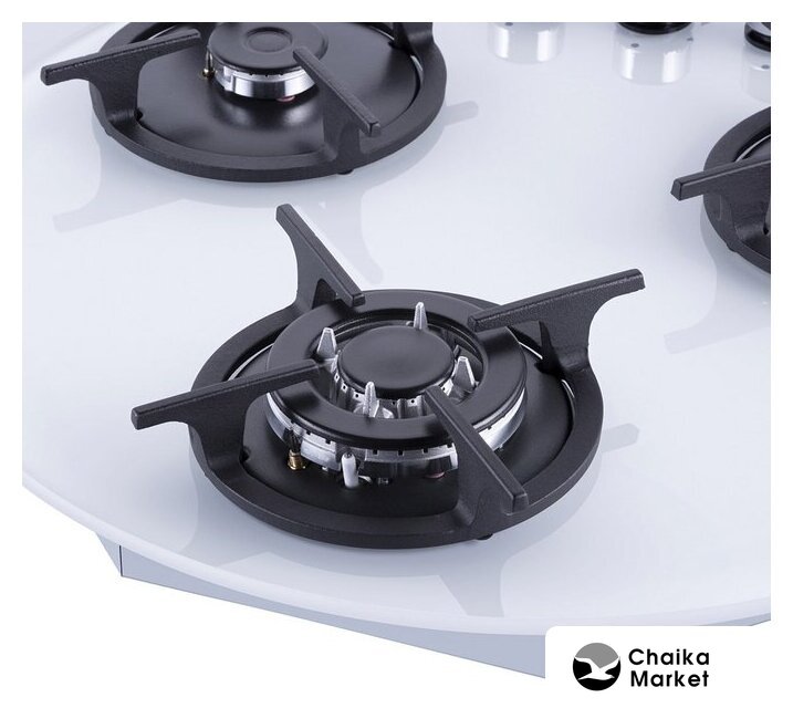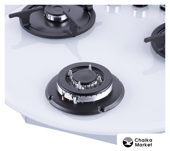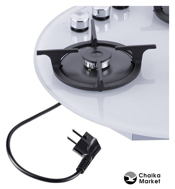 газовая на 4 конфорки, закаленное стекло, мощность: 7000 Вт, автоматический электроподжиг, газ-контроль, решетки: чугун, независимая установка