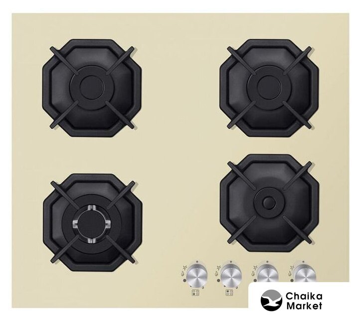 газовая на 4 конфорки, закаленное стекло, мощность: 8200 Вт, автоматический электроподжиг, газ-контроль, решетки: чугун, независимая установка, размеры (ШхГ): 59x51.5 см