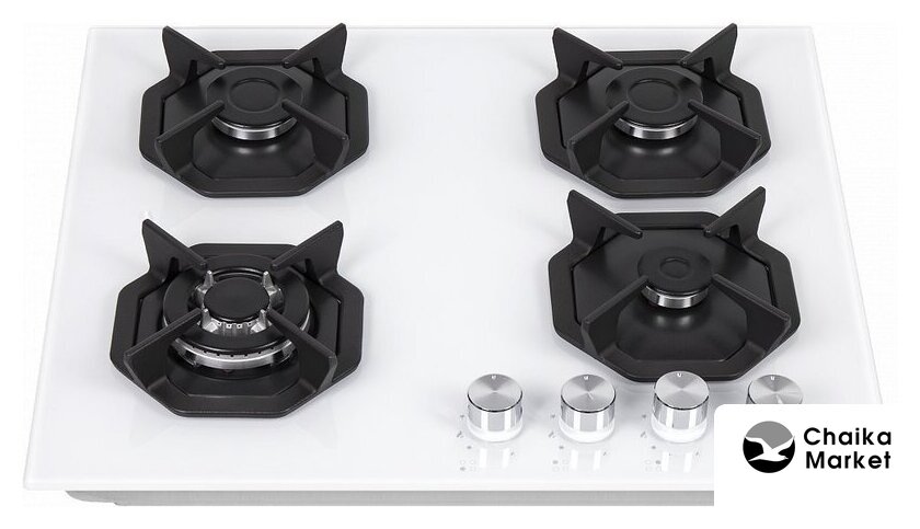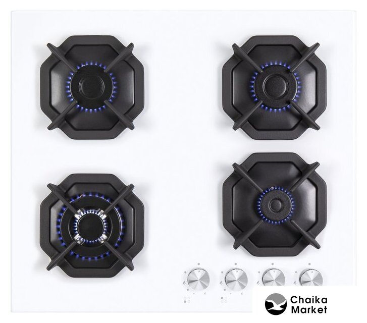 газовая на 4 конфорки, закаленное стекло, мощность: 7800 Вт, автоматический электроподжиг, газ-контроль, решетки: чугун, размеры (ШхГ): 60x51 см