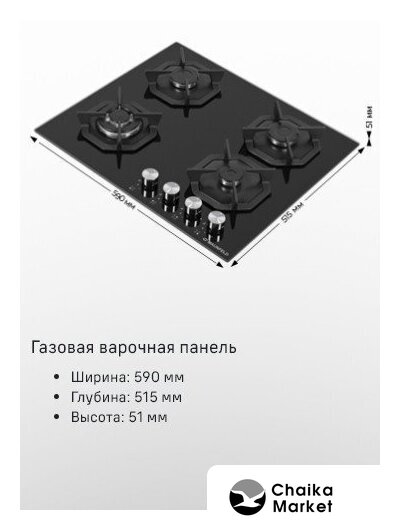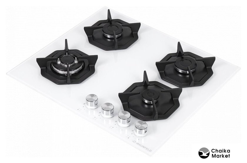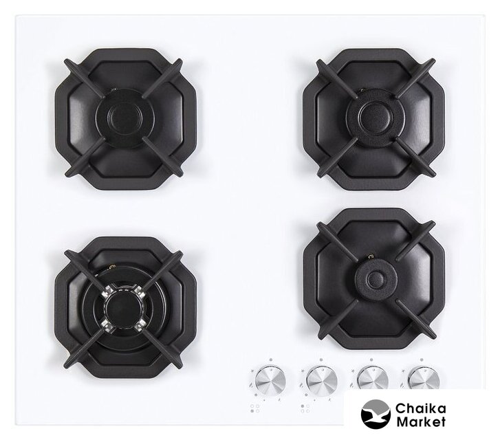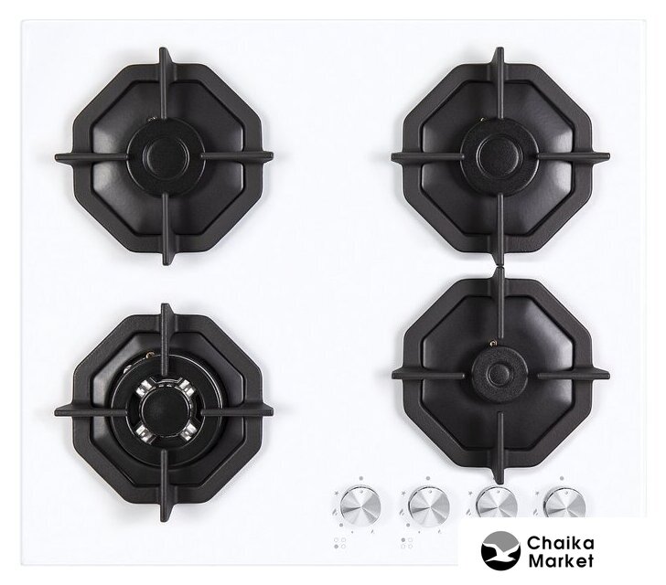 газовая на 4 конфорки, нержавеющая сталь, мощность: 10300 Вт, автоматический электроподжиг, газ-контроль, решетки: чугун, размеры (ШхГ): 60x51 см