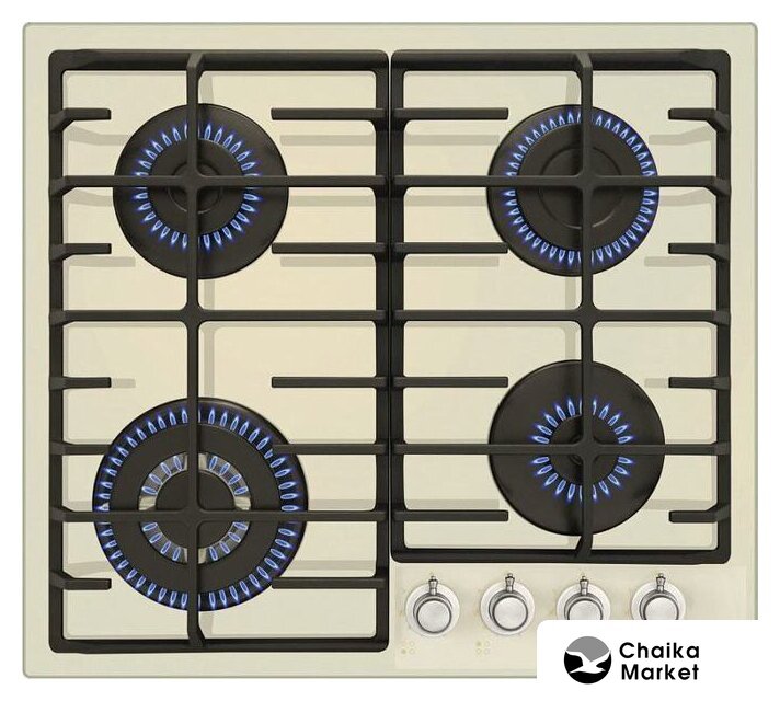 газовая на 4 конфорки, закаленное стекло, мощность: 9100 Вт, автоматический электроподжиг, газ-контроль, решетки: чугун, независимая установка, размеры (ШхГ): 59x51.5 см