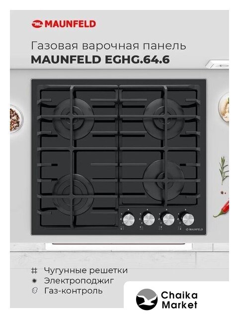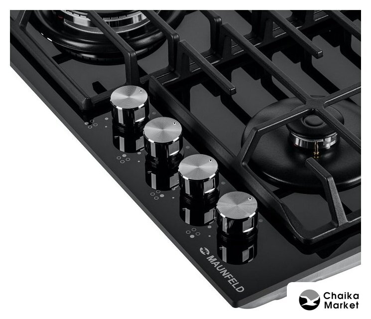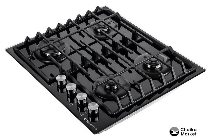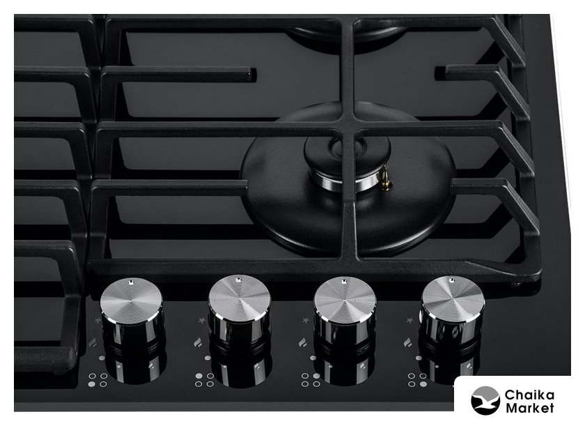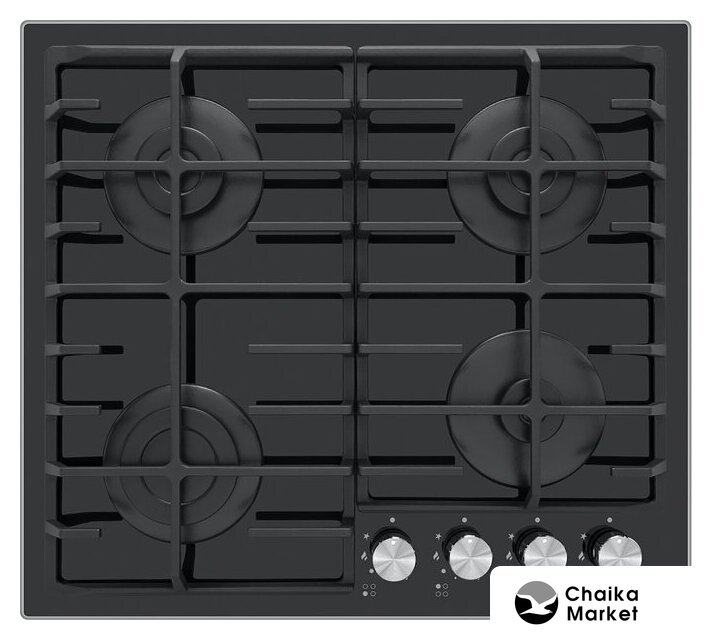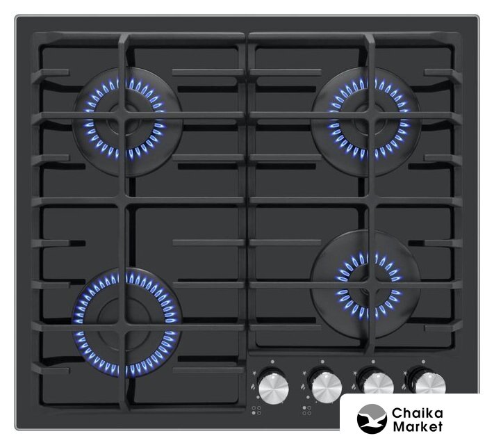 газовая на 4 конфорки, закаленное стекло, мощность: 7400 Вт, автоматический электроподжиг, газ-контроль, решетки: чугун, независимая установка