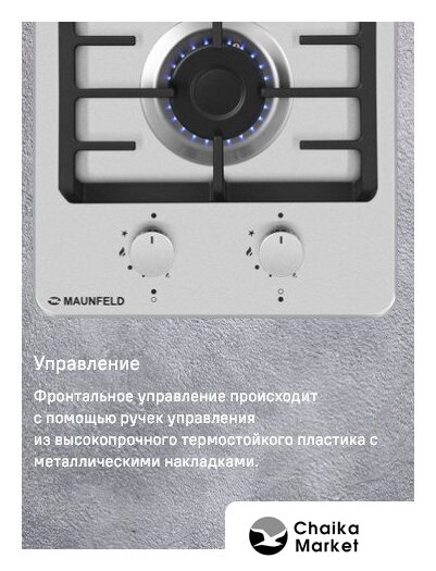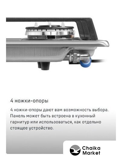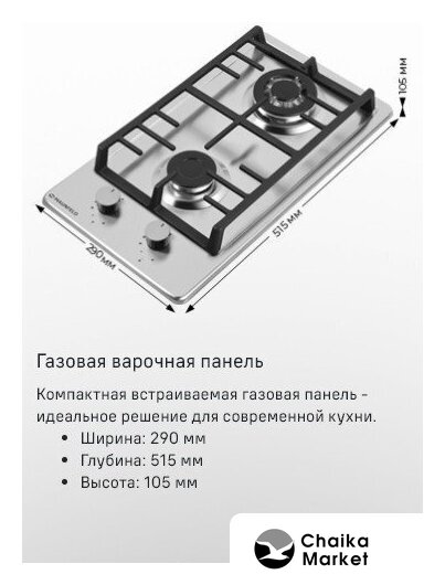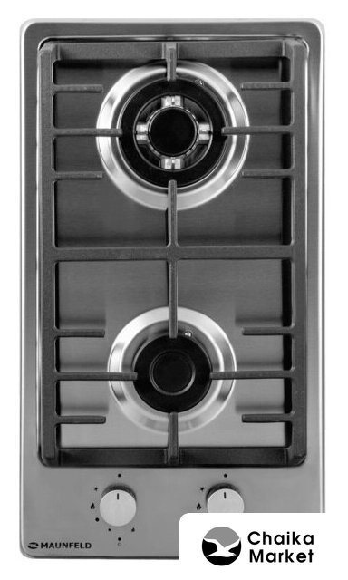 газовая на 2 конфорки, закаленное стекло, мощность: 4300 Вт, автоматический электроподжиг, газ-контроль, решетки: чугун, независимая установка, размеры (ШхГ): 29x51.5 см