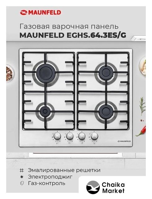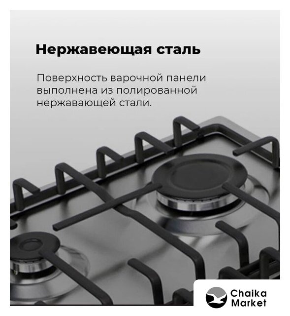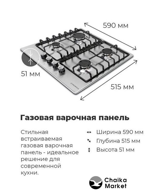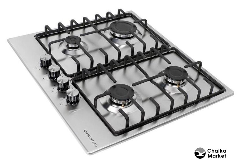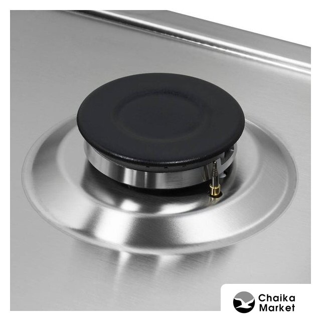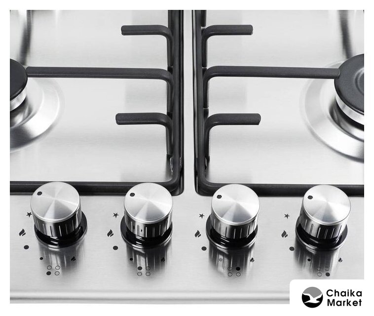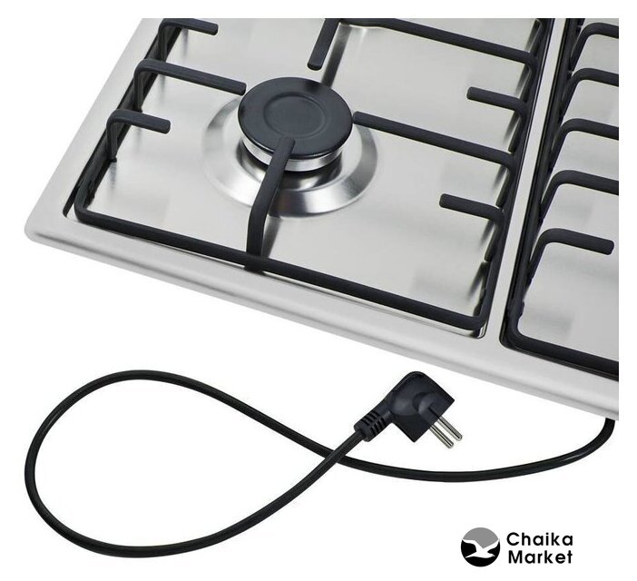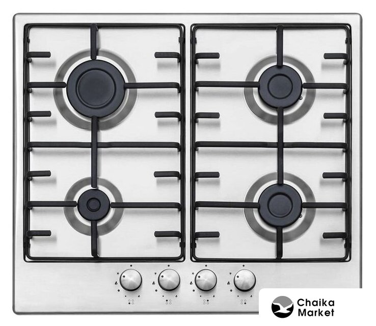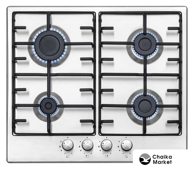 газовая на 4 конфорки, нержавеющая сталь, мощность: 7800 Вт, автоматический электроподжиг, газ-контроль, решетки: чугун, независимая установка, размеры (ШхГ): 58x51 см