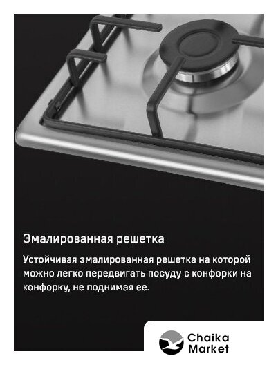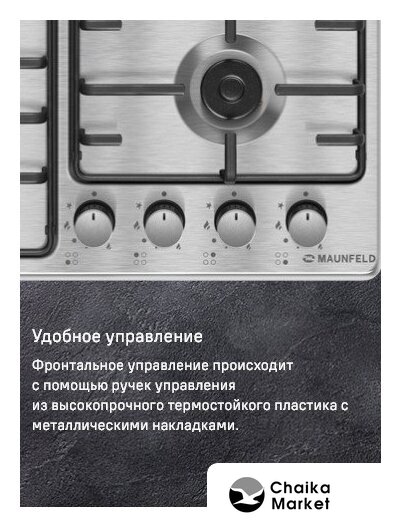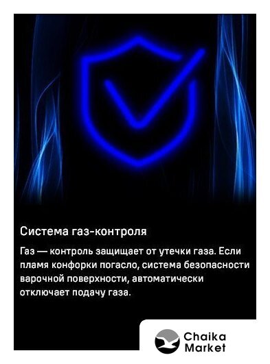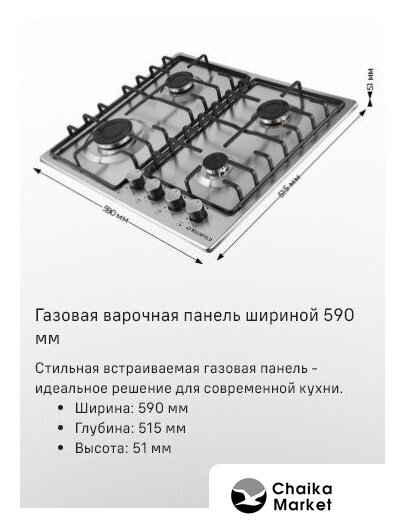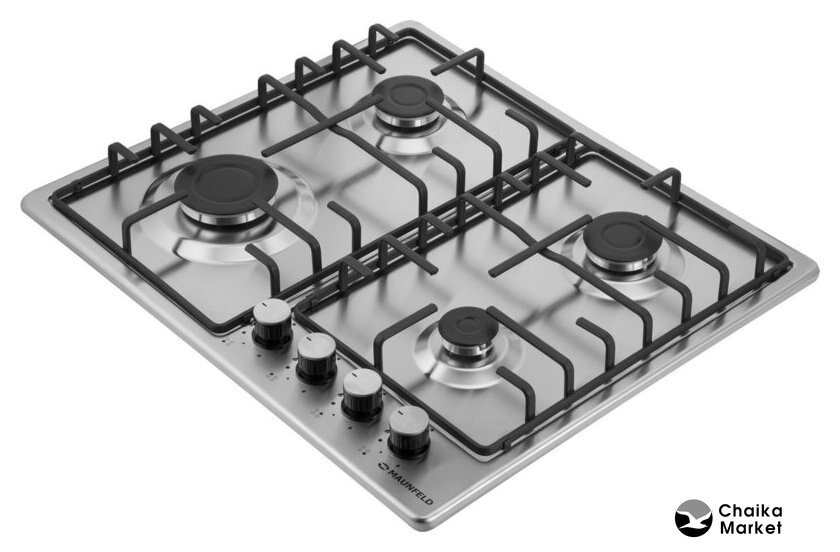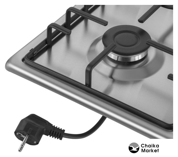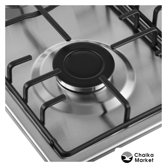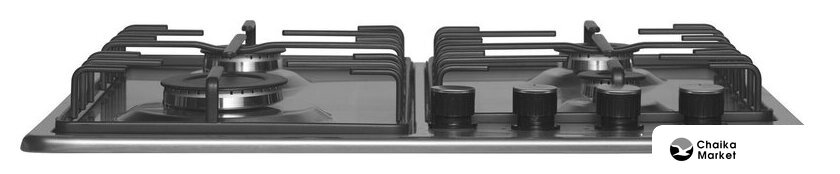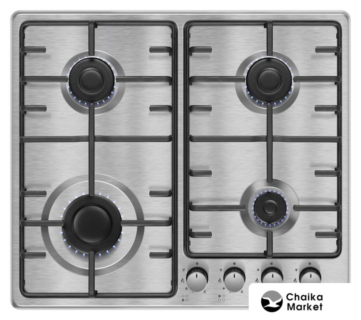 газовая на 4 конфорки, закаленное стекло, мощность: 7000 Вт, автоматический электроподжиг, газ-контроль, решетки: чугун, независимая установка