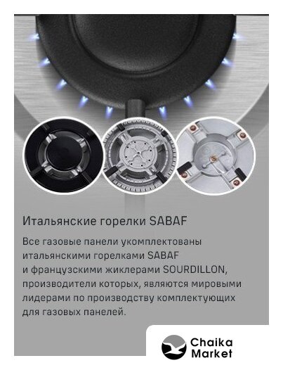 Подробная информация о конфорках | 4 конфорки мощностью: 2600, 2x1700, 1000 Вт |