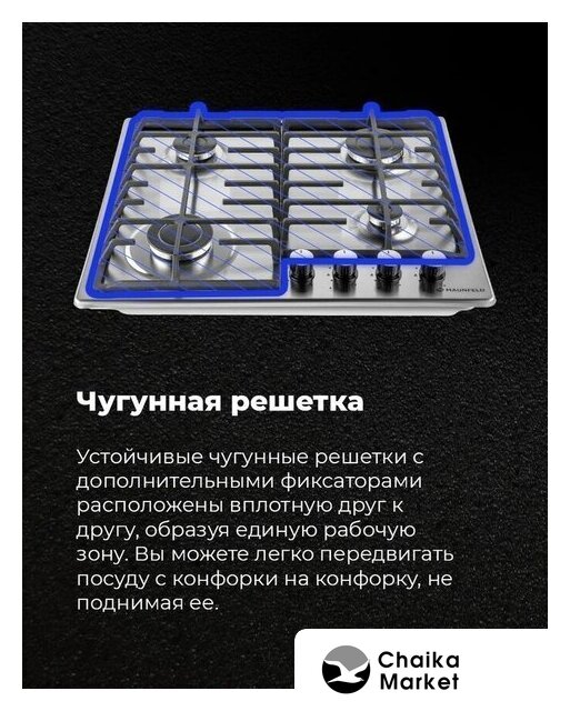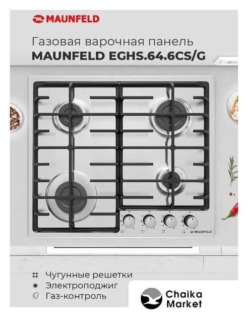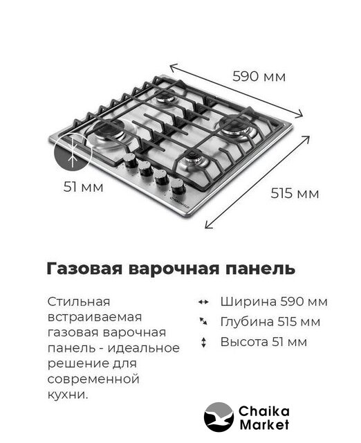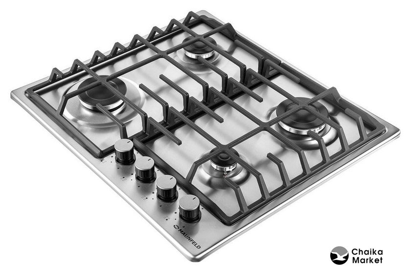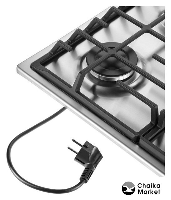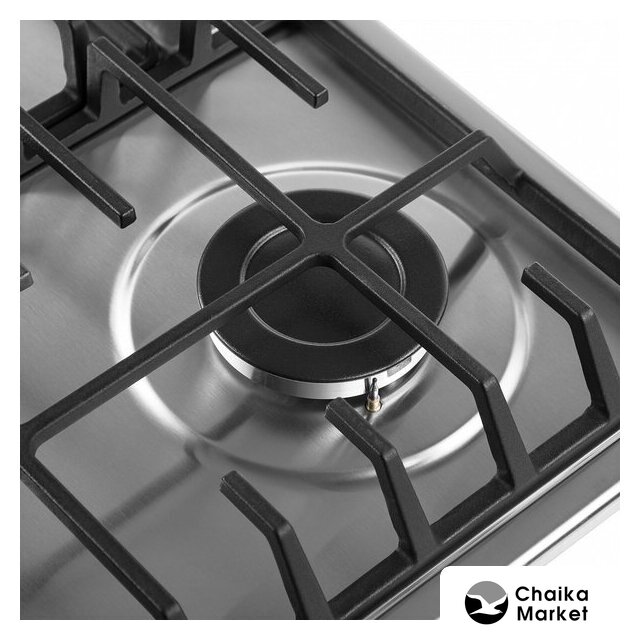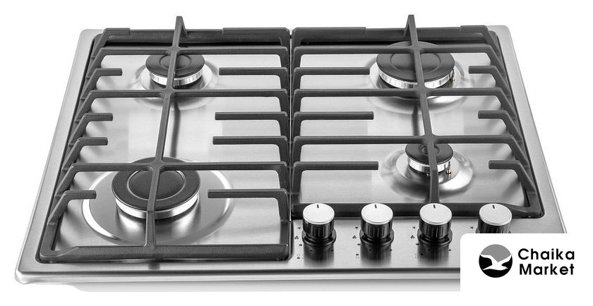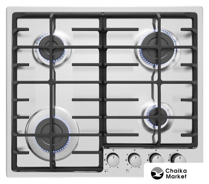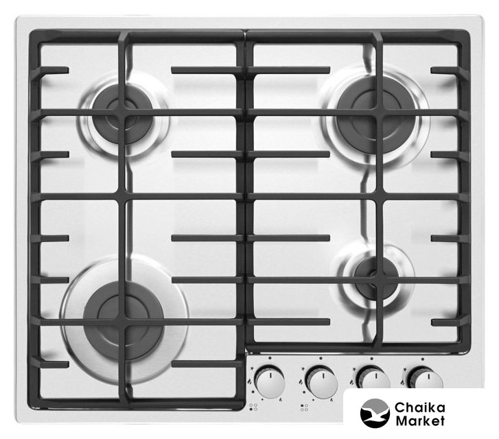 газовая на 4 конфорки, нержавеющая сталь, мощность: 8000 Вт, автоматический электроподжиг, газ-контроль, решетки: чугун, независимая установка, размеры (ШхГ): 58x50 см