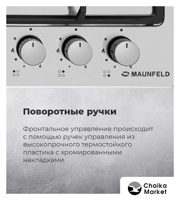 газовая на 3 конфорки, нержавеющая сталь, мощность: 5700 Вт, автоматический электроподжиг, газ-контроль, решетки: чугун, независимая установка, размеры (ШхГ): 44x51 см