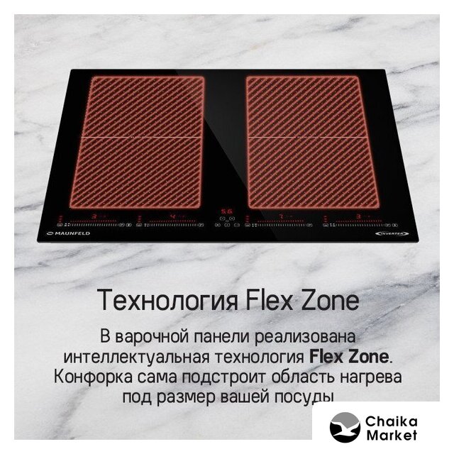 индукционная на 4 конфорки, cтеклокерамика, мощность: 7200 Вт, автоматика закипания, независимая установка, размеры (ШхГ): 58x51 см