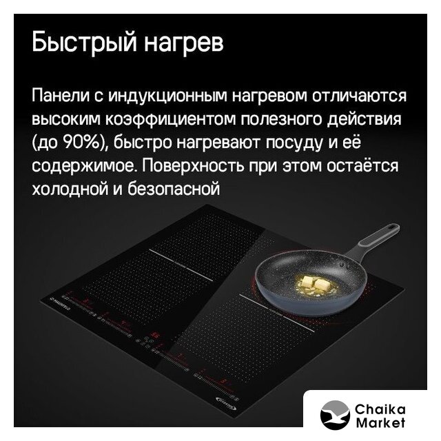 индукционная на 4 конфорки, cтеклокерамика, независимая установка