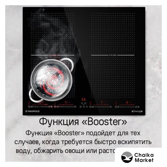 | Подробная информация о конфорках | 2х2000Вт (бустер 2600Вт), 2х1500Вт (бустер 2000Вт) |