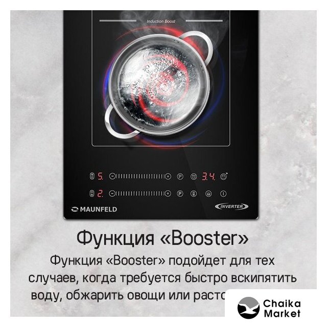 | Подробная информация о конфорках | 1х1200 (бустер 1500), 1х2000 (бустер 2300) |