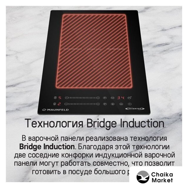индукционная на 3 конфорки, cтеклокерамика, мощность: 6200 Вт, независимая установка, размеры (ШхГ): 45x51 см