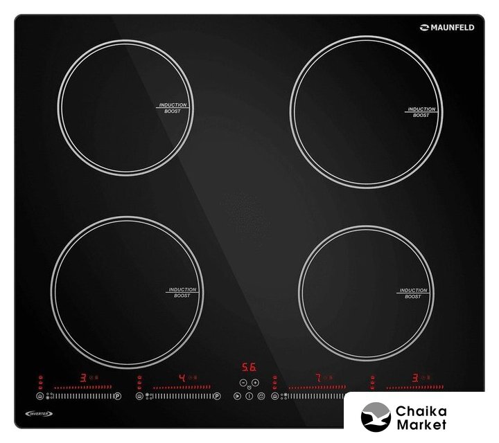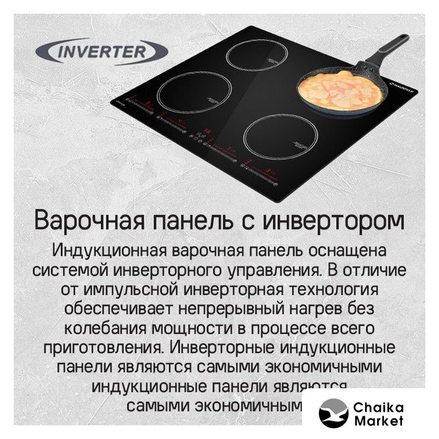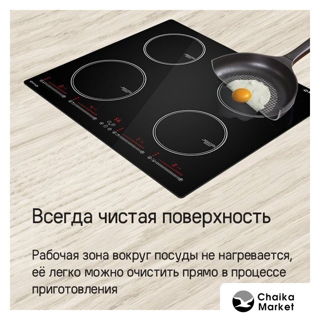 индукционная на 4 конфорки, cтеклокерамика, мощность: 6400 Вт, независимая установка, размеры (ШхГ): 59x52 см