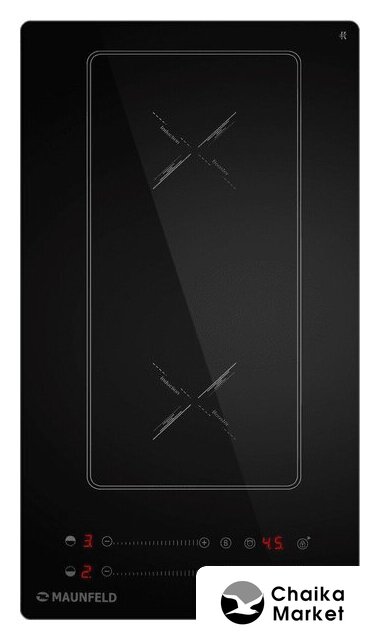 индукционная на 2 конфорки, cтеклокерамика, независимая установка, размеры (ШхГ): 28.8x52 см