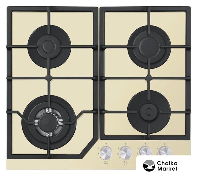 газовая на 4 конфорки, закаленное стекло, автоматический электроподжиг, газ-контроль, решетки: чугун, независимая установка, размеры (ШхГ): 59x51 см