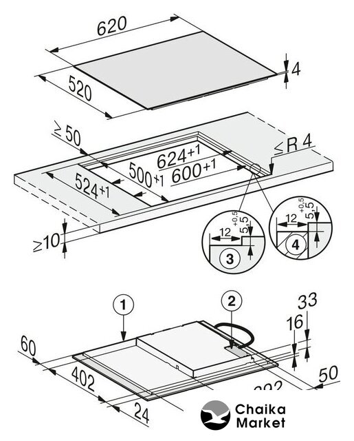 индукционная на 4 конфорки, cтеклокерамика, мощность: 7400 Вт, автоматика закипания, независимая установка, размеры (ШхГ): 60.2x52 см