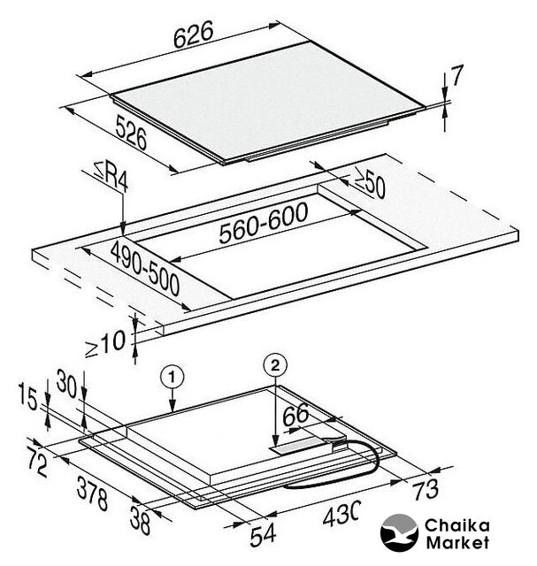 индукционная на 4 конфорки, cтеклокерамика, мощность: 7200 Вт, автоматика закипания, независимая установка, размеры (ШхГ): 72x51.5 см
