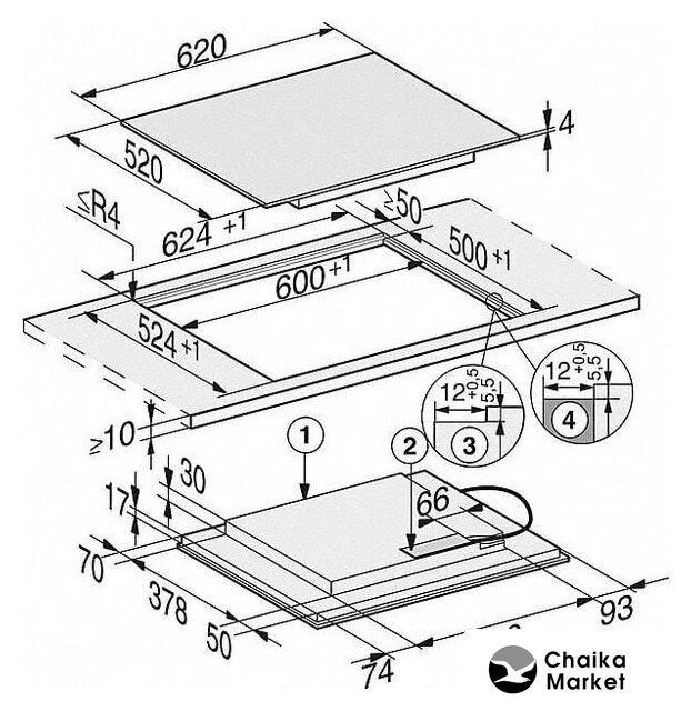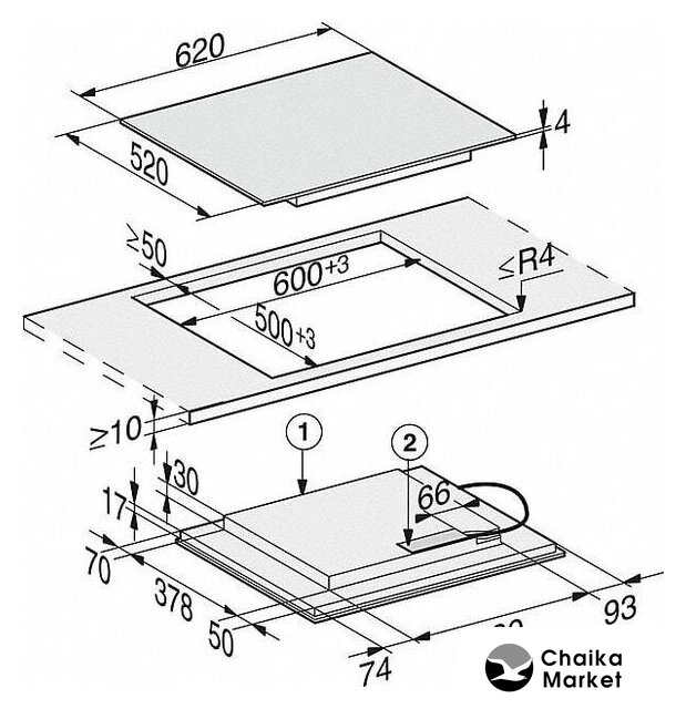 индукционная на 4 конфорки, cтеклокерамика, независимая установка, размеры (ШхГ): 65x51.5 см