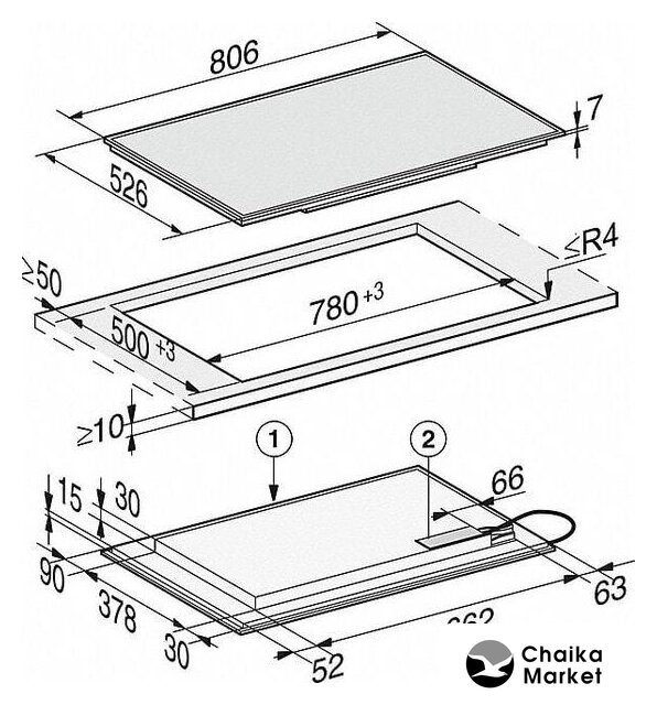 индукционная на 4 конфорки, cтеклокерамика, мощность: 7545 Вт, независимая установка, размеры (ШхГ): 83x52 см