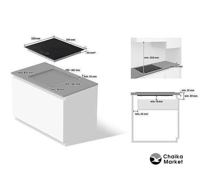 индукционная на 4 конфорки, cтеклокерамика, мощность: 7400 Вт, независимая установка, размеры (ШхГ): 59x52 см