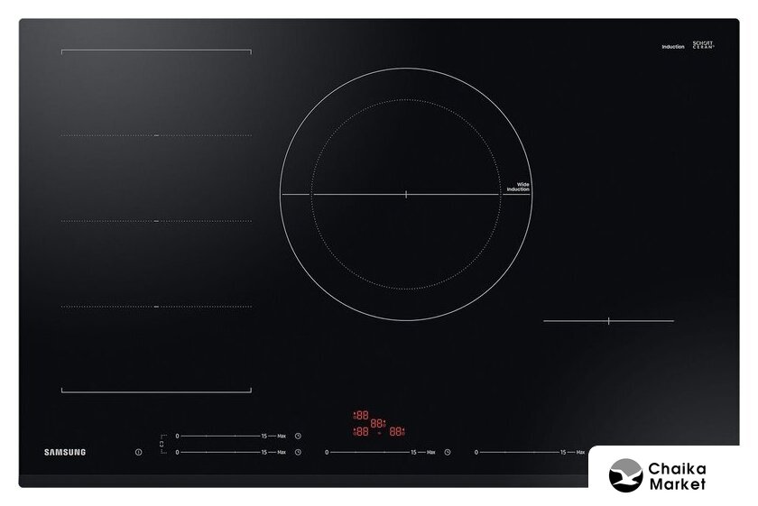 индукционная на 5 конфорок, cтеклокерамика, мощность: 7400 Вт, независимая установка, размеры (ШхГ): 80.2x52.2 см