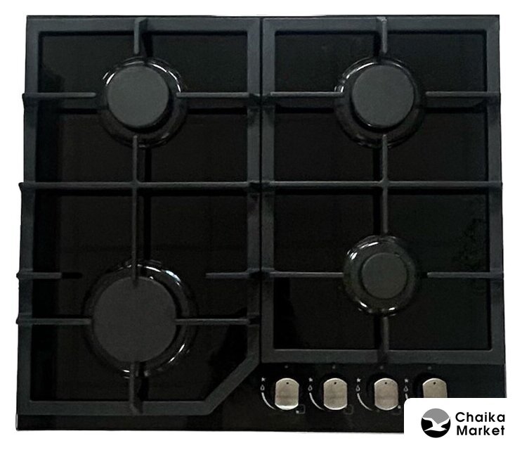 газовая на 4 конфорки, закаленное стекло, мощность: 7500 Вт, автоматический электроподжиг, газ-контроль, решетки: чугун, размеры (ШхГ): 60x51 см