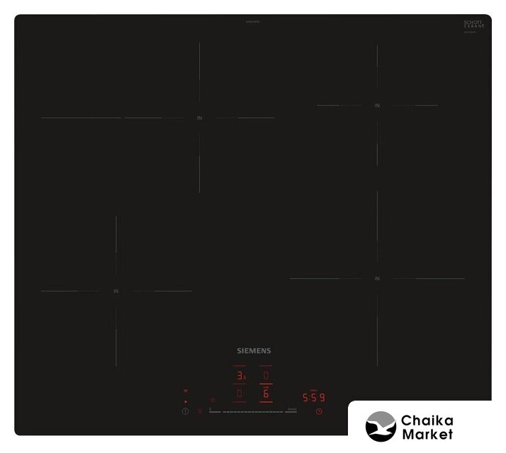 индукционная на 4 конфорки, cтеклокерамика, мощность: 8800 Вт, автоматика закипания, независимая установка, размеры (ШхГ): 60x51 см