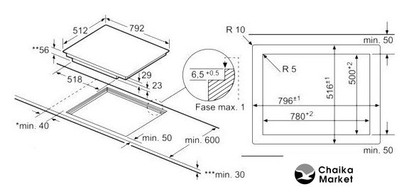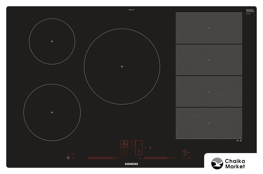 Подробная информация о конфорках | 1 x 180 мм, 1,8/3,1 кВт; 1 x 145 мм, 1,4/2,2 кВт;1 х 240 мм, 2,2/3,7 кВт; 2 x 200 мм, 2,2 кВт/3,7 кВт (1 x 400x200 мм, 3,3/3,7 кВт ) |