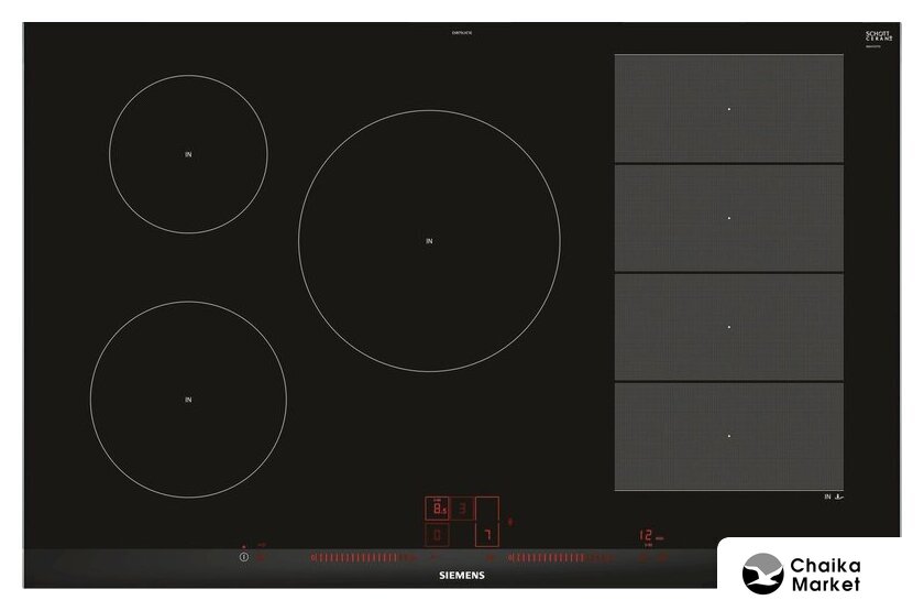 индукционная на 4 конфорки, cтеклокерамика, мощность: 7400 Вт, независимая установка, размеры (ШхГ): 79.2x51.2 см